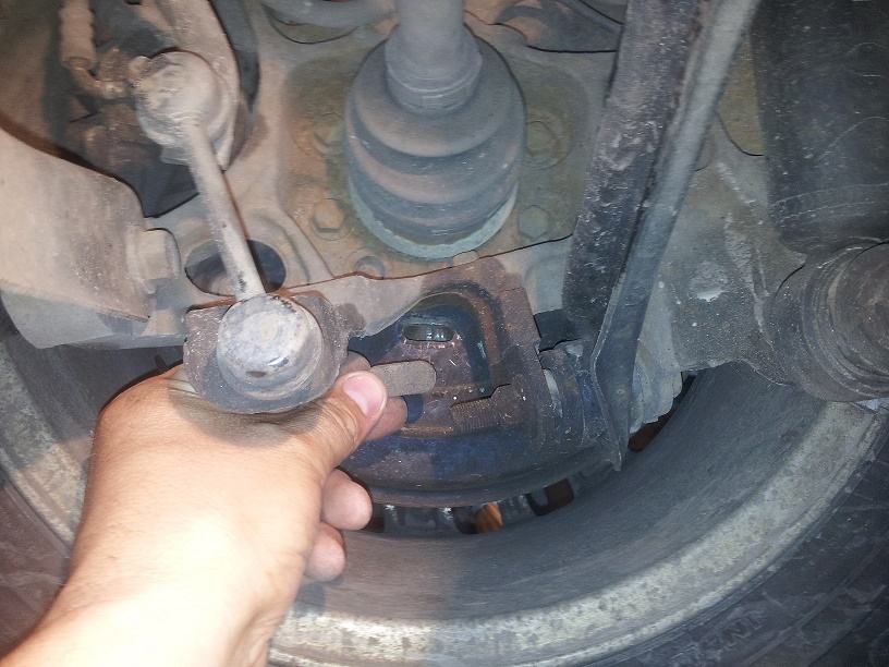 Щоб довго не експериментувати, я підняв спочатку ліве заднє колесо на домкрат, три рази клацнув ручником і за допомогою викрутки крутив дану гайку-шестерню догори, до того моменту, поки диск не почав торкатися колодок (на звук), і чуть важче стало повертати колесо рукою.
