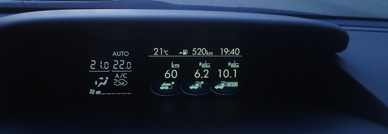 В городе сейчас 8.6 , стремится к увеличению если пробки...после трассы пробег обнулил.