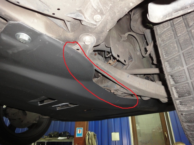 Arsenal писал(а):Если от защиты до гайки заднего сайлентблока рычага подвески будет хотя бы 2 см (там где обведено), то станет и ничего там резать не надо.
