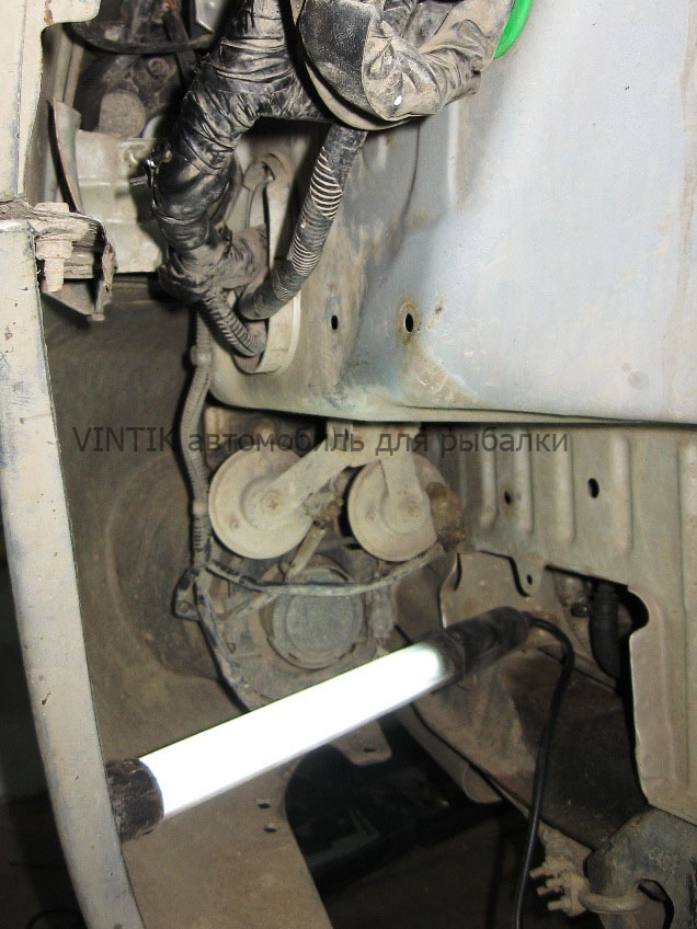 После форсирования водной преграды очередной раз разобрал салон. Текстильные маты которыми проклеен ковёр снизу пропитываются влагой и потом месяцами воняют жмуром. Никакое проветривание и просушка не помогают, поэтому пришлось решить проблему радикально. Содрал и сошкрябал щёткой все тряпки с ковра, а для обесшумки применил синтетический не гигроскопичный материал. Сначала было хорошо, но зимой влага с сапог начала скапливаться между слоями и в полостях кузова, явно не хватало вентиляции. Присмотревшись к конструкции понял, что в процессе производства система отопления и кондиционирования была упрощена, по всей видимости из экономии, не хватало воздуховодов в ногах водителя и пассажира, а задние были укорочены.