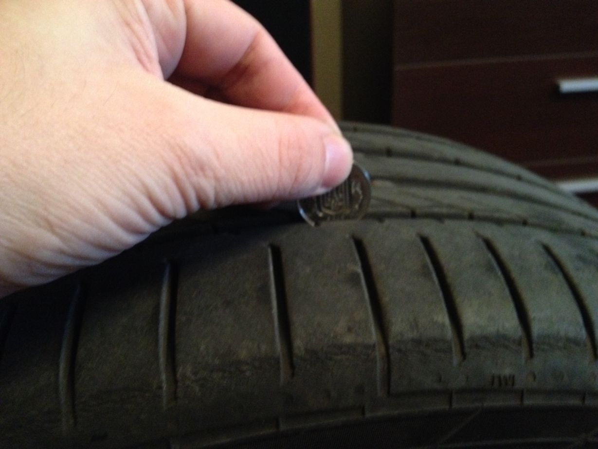 Остаток ~ 6-6.5 мм. равномерный износ всех 4 колес.