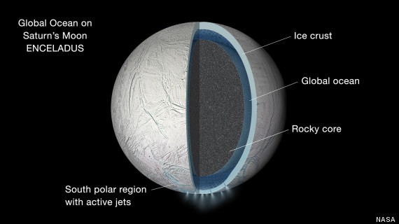 На одном из спутников Сатурна - Энцеладе, под коркой льда обнаружен огромный океан?