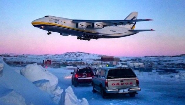 Український Ан-124 "Руслан" доставив у північне канадське місто Ікалуїт велетенський авіадвигун для ремонту Boeing-777 "Швейцарських авіаліній".