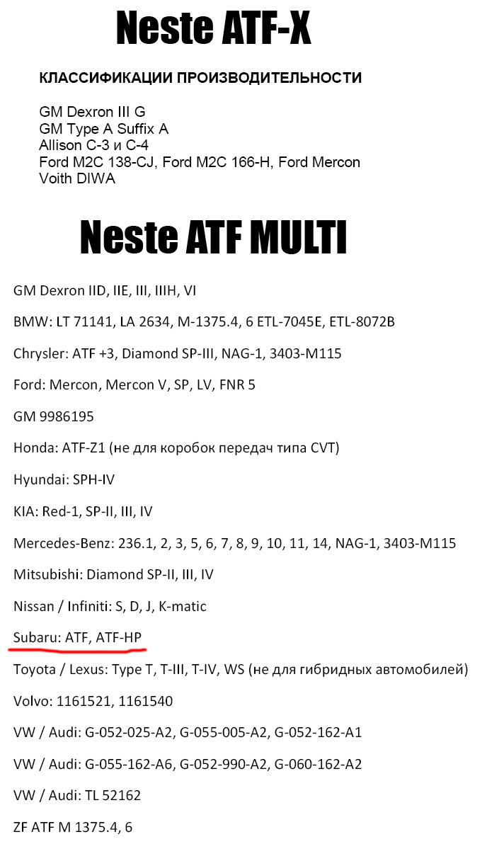 Если вс вринамательно прочтете еще раз тo вы увидте что я писал 2 разных бренда а не маркировку масла. Это раз! а два на дром есть уже целая ветка страниц на 200 где люди лили neste atf x в 5ЕТ